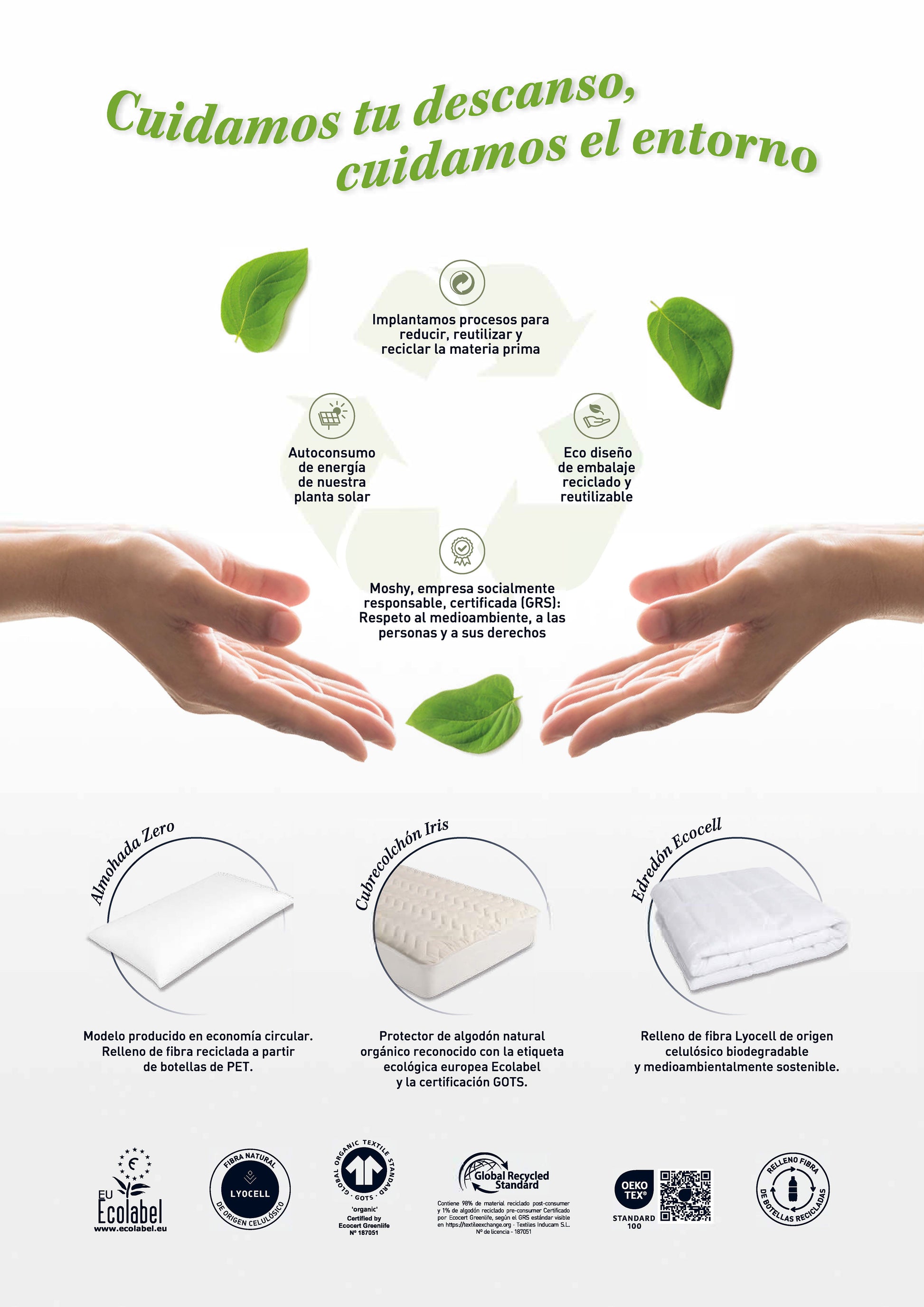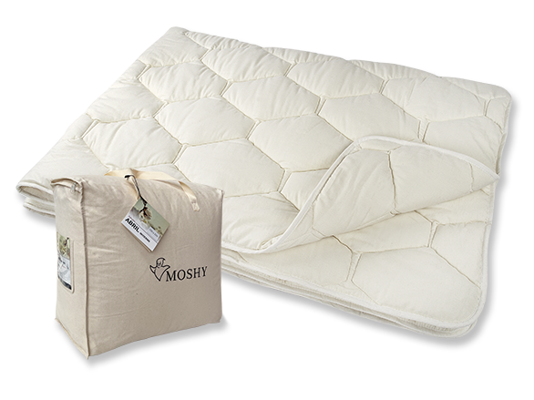 La Etiqueta Ecológica Europea “ECOLABEL” (Licencia Ecolabel - NA16/001) certifica los productos que son totalmente respetuosos con el medio ambiente en todo su proceso de fabricación. Galardonado con esta certificación el edredón Moshy Abril Contiene como relleno una selección de los filamentos más largos y resistentes de la flor del algodón para obtener una napa muy confortable y totalmente ecológica. Estos filamentos de algodón natural son cardados para conseguir una fibra que destaca por su capacidad de absorción y aislante térmico. Es lavable y no se apelmaza ni apolilla transmitiendo una gran sensación de frescor. Es un edredón flexible, adaptable y no acumula electricidad estática. Su tejido 100% algodón está libre de tinturas, lo que acaba por configurar un producto 100% natural y ecológico.