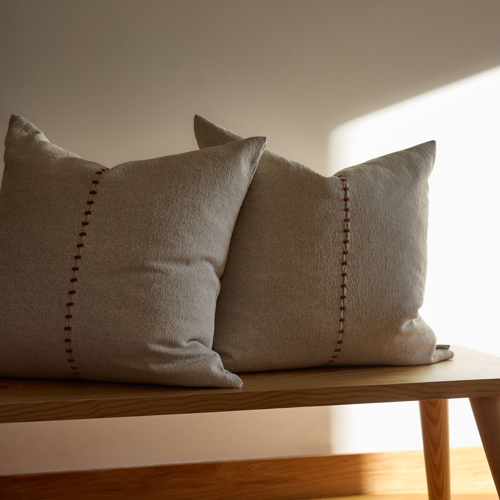 Cojín algodón con relleno incluido. Tejido color natural con bordado de color.
