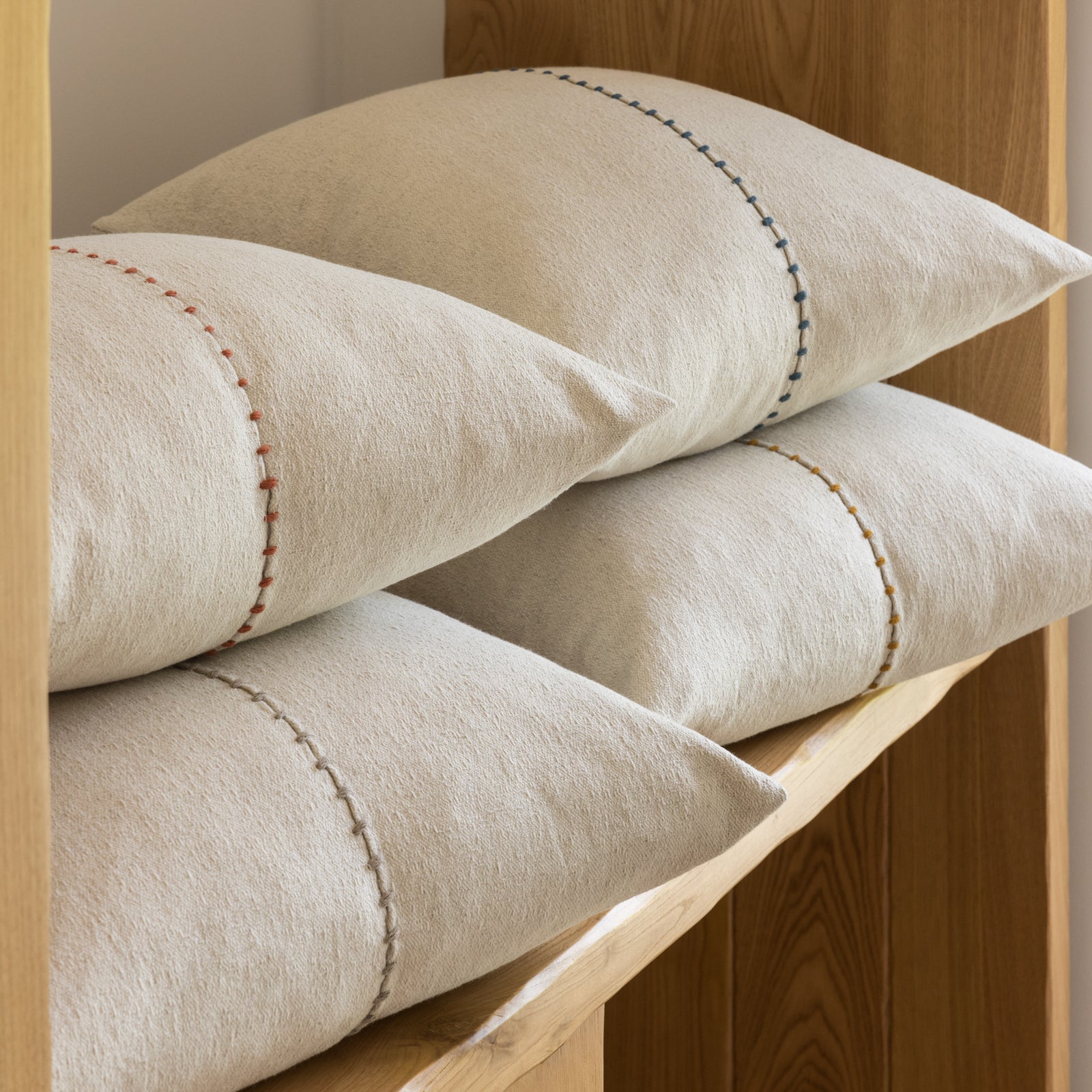 Cojín algodón con relleno incluido. Tejido color natural con bordado de color.