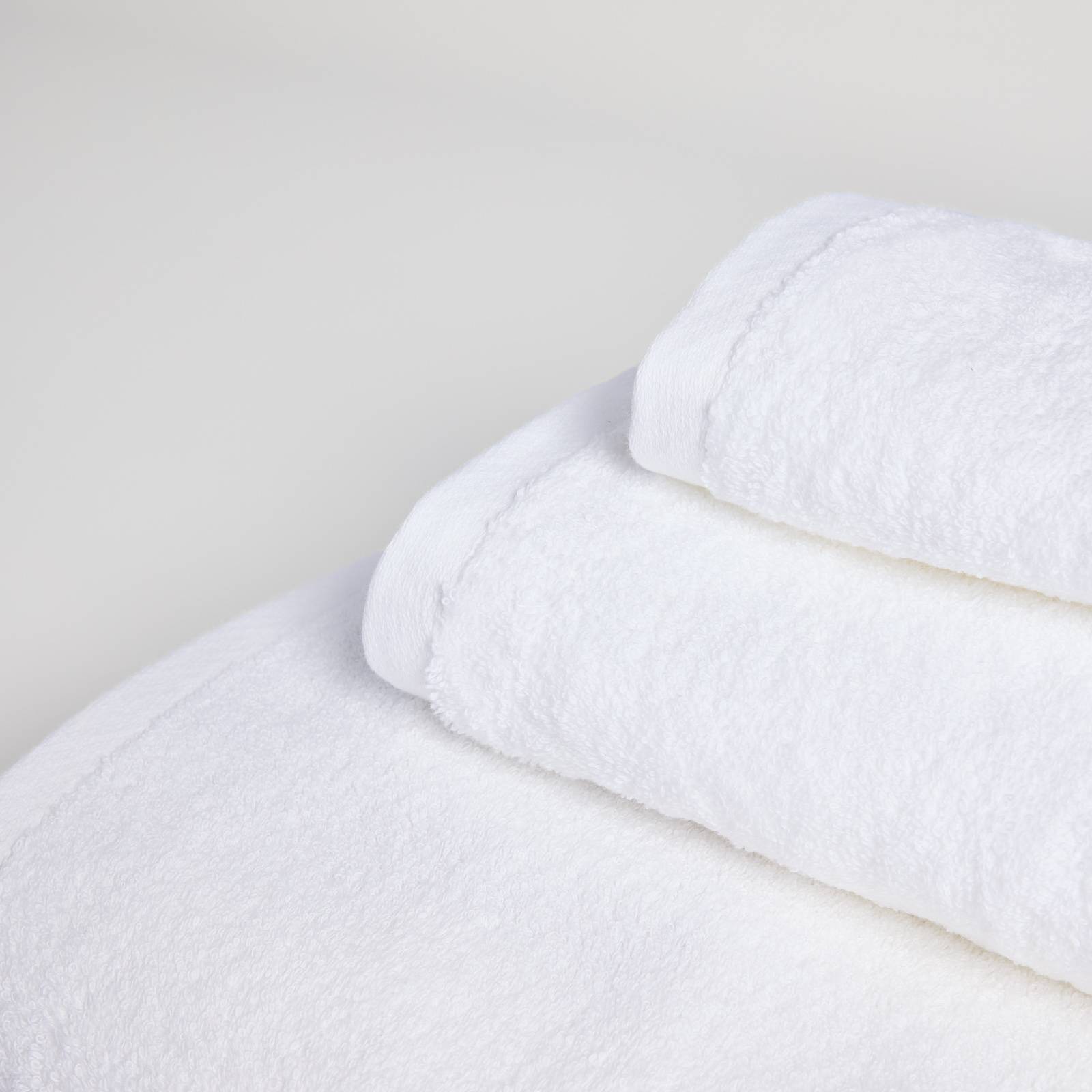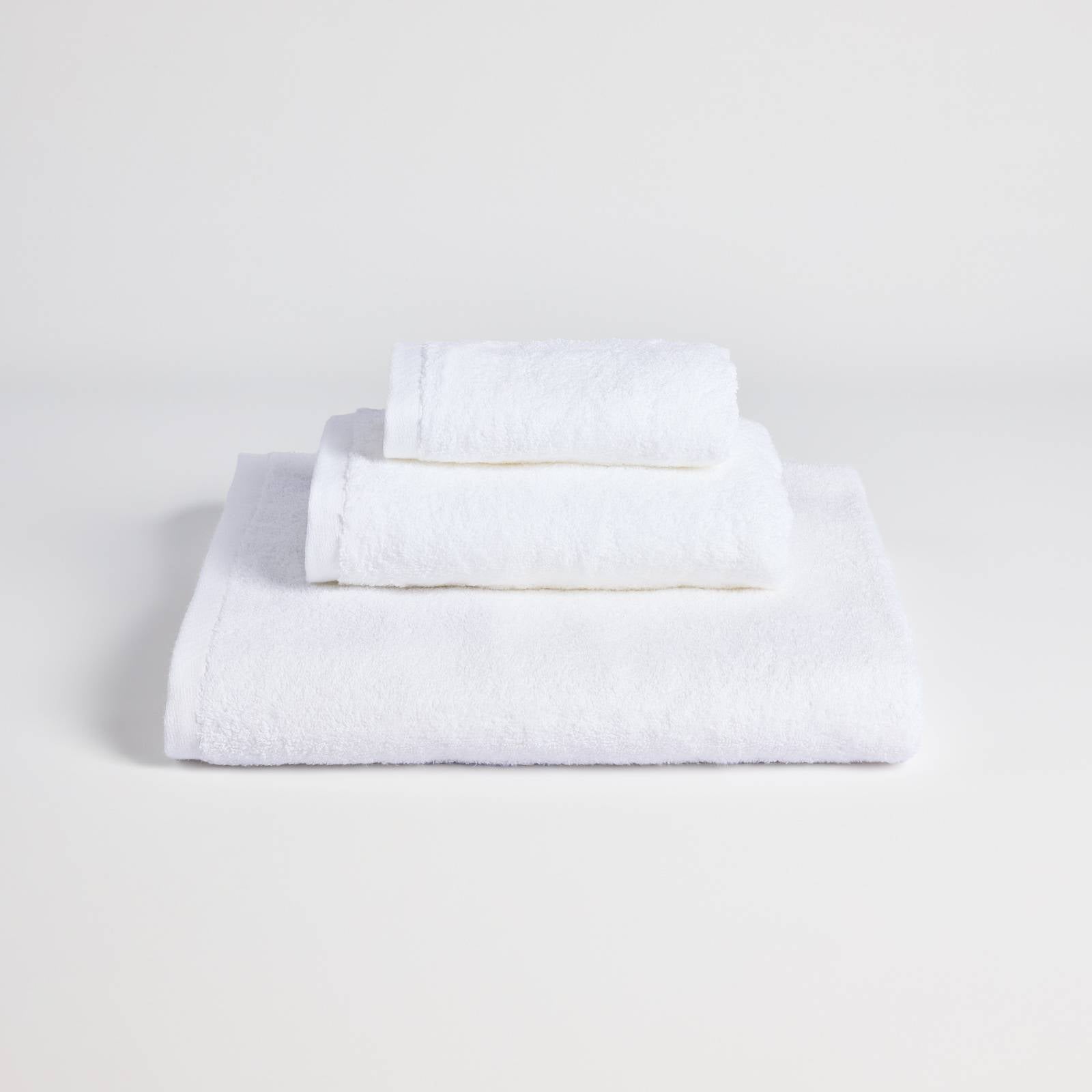 Juego de 3 toallas de algodón 500 gr/m2, que da como resultado un tejido suave, absorbente y resistente. Incluye la toalla de tocador 30x50 cm, toalla de lavabo 50x100 cm y toalla de baño 100x150 cm. Fabricado de forma sostenible, 100% algodón BCI
