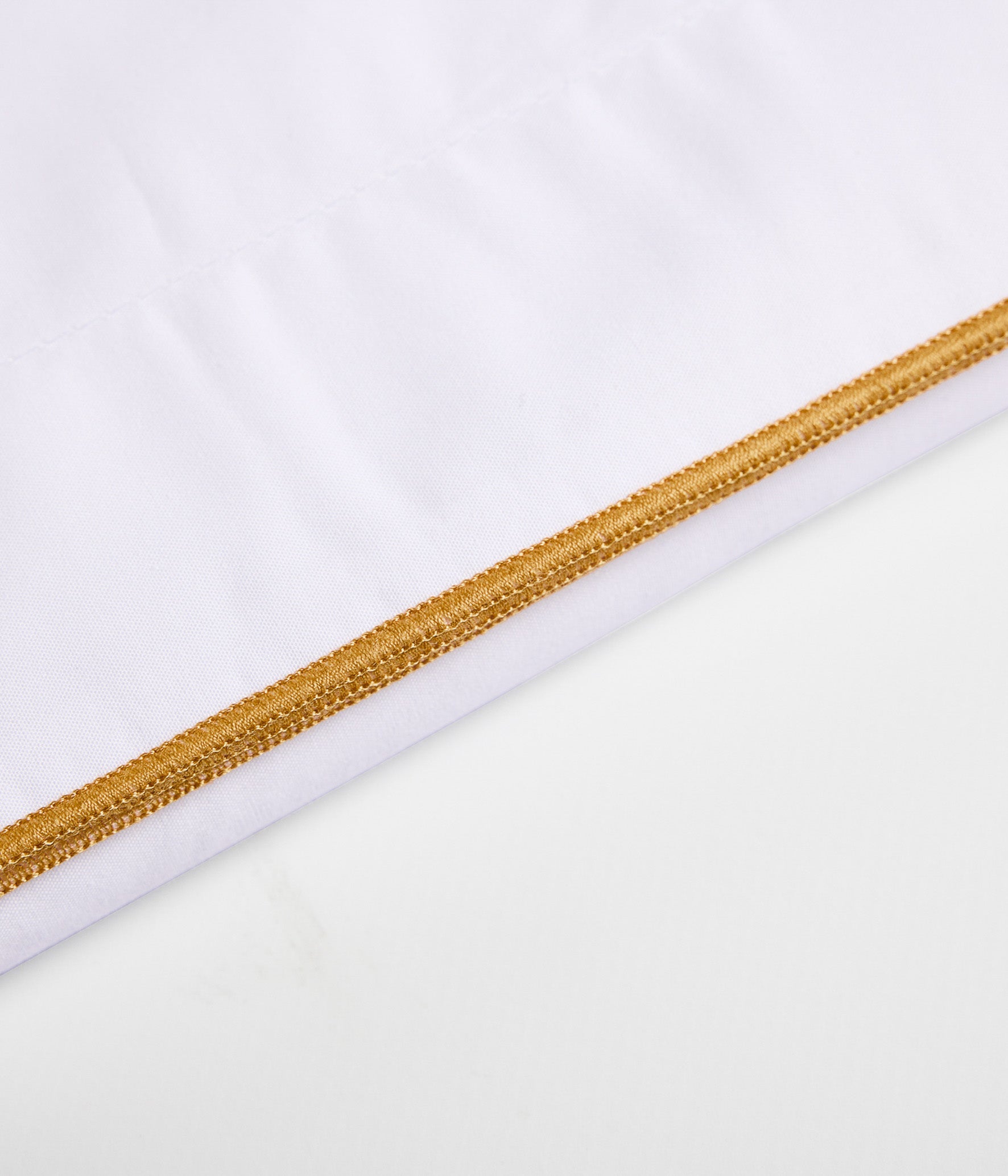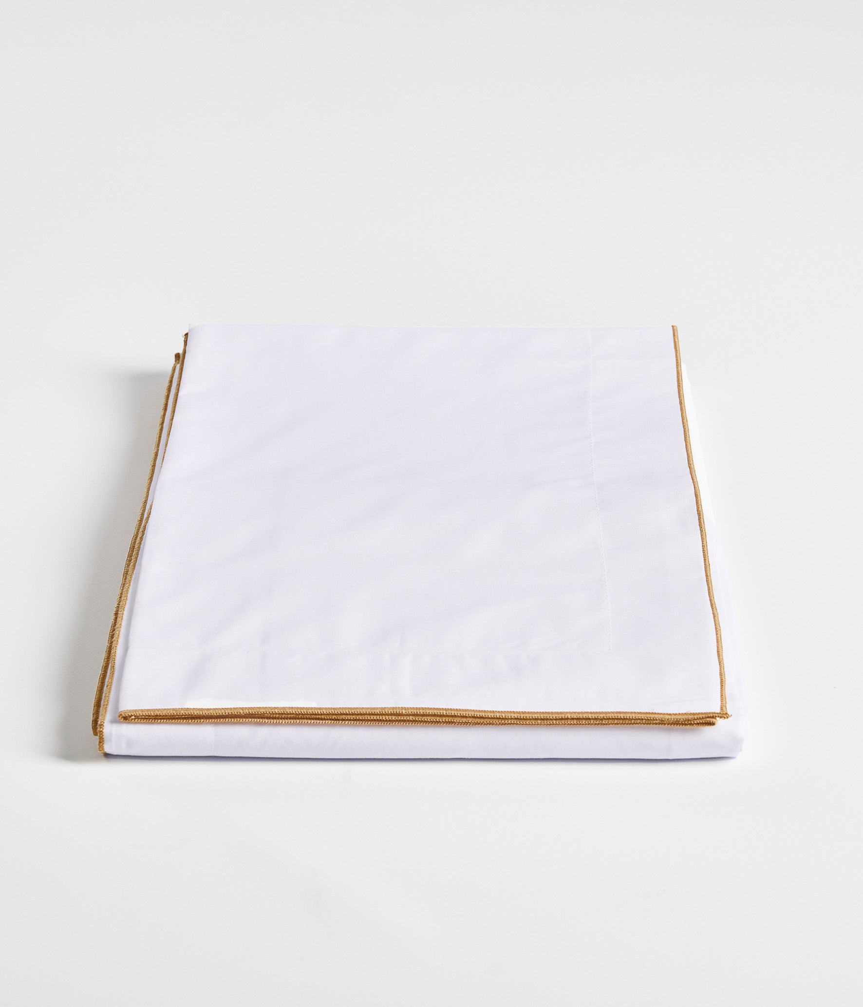 Juego de sábana con bajera 100% algodón BCI con acabado bordado en hilo de color . Fabricado en calidad percal 200 hilos de alta calidad y con certificado sostenible BCI con acabado bordado en hilo de color , producciones respetuosas con el medio ambiente y la salud de las personas.