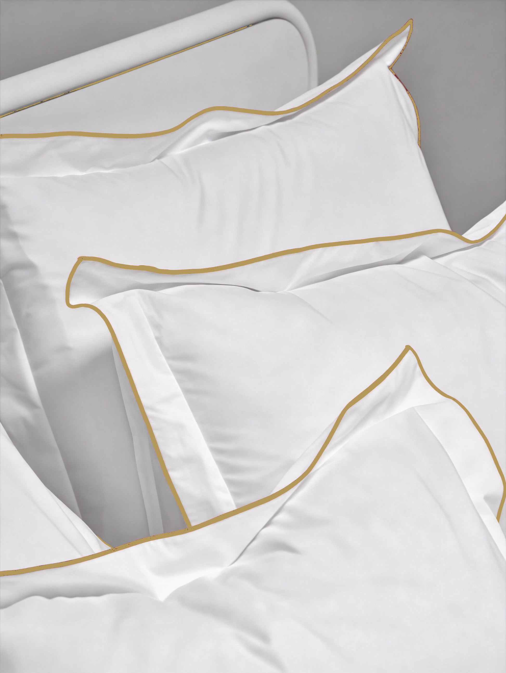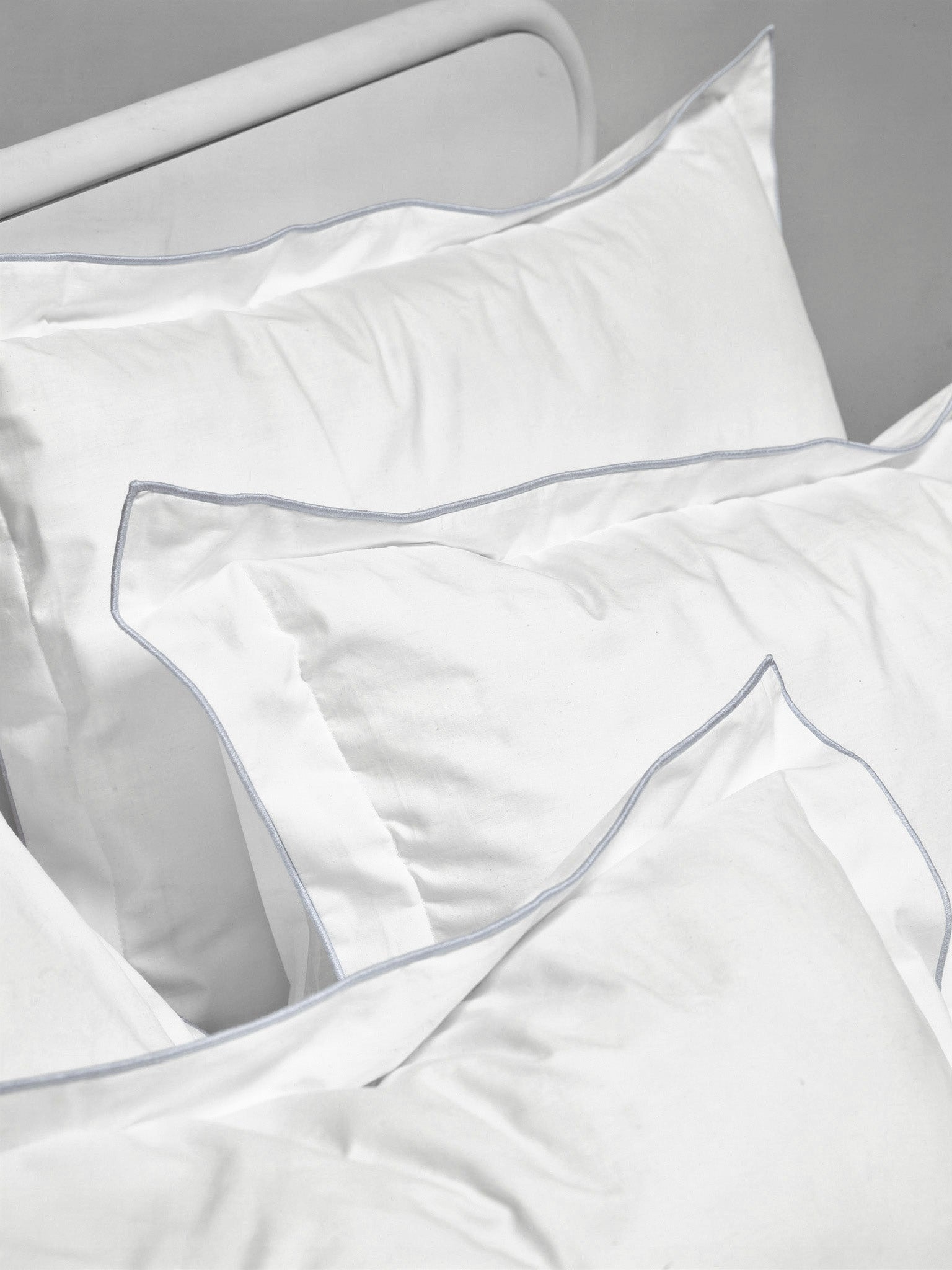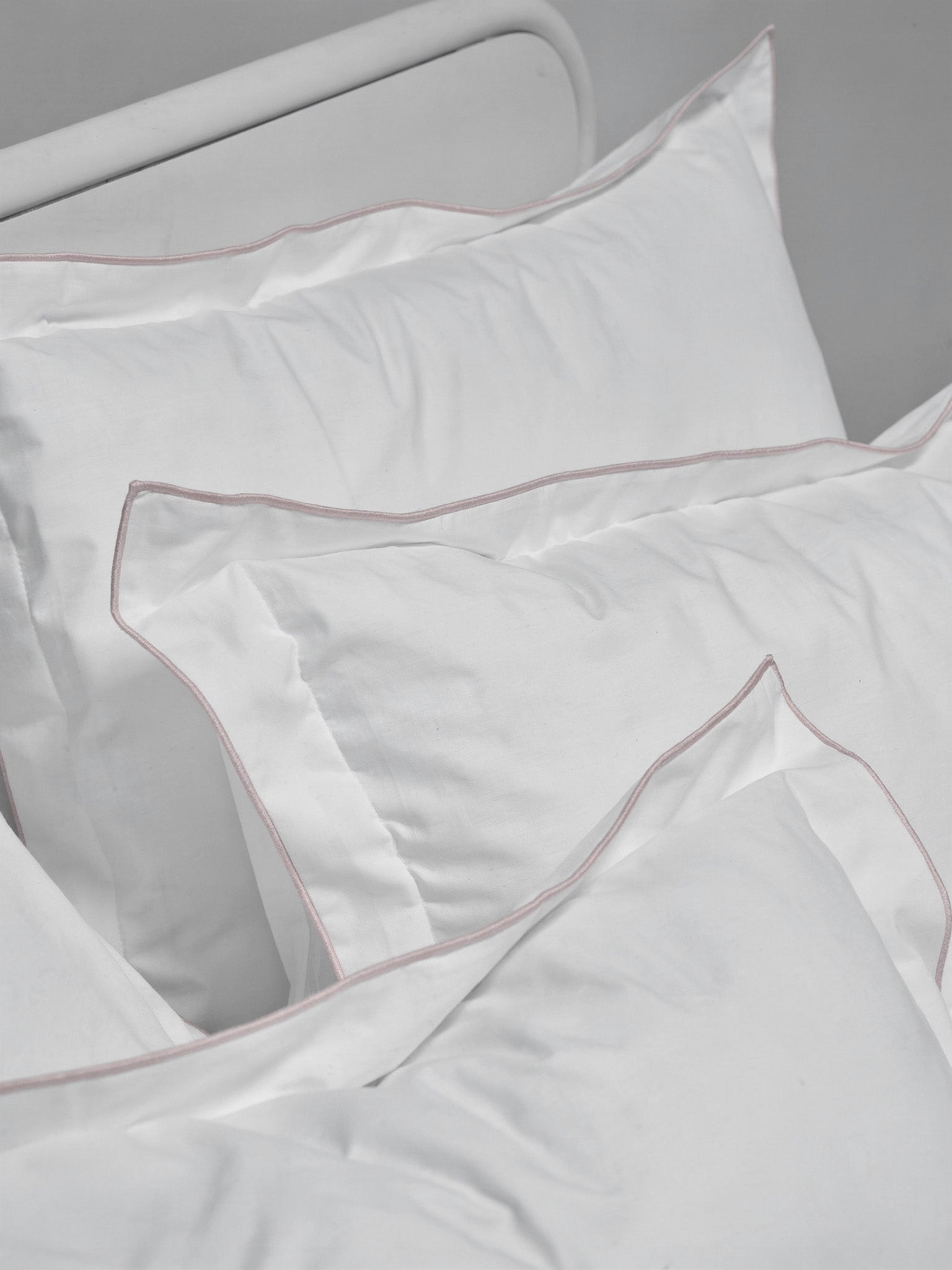 Almohada 100% algodón BCI con acabado bordado en hilo de color . Fabricado en calidad percal 200 hilos de alta calidad y con certificado sostenible BCI con acabado bordado en hilo de color , producciones respetuosas con el medio ambiente y la salud de las personas.