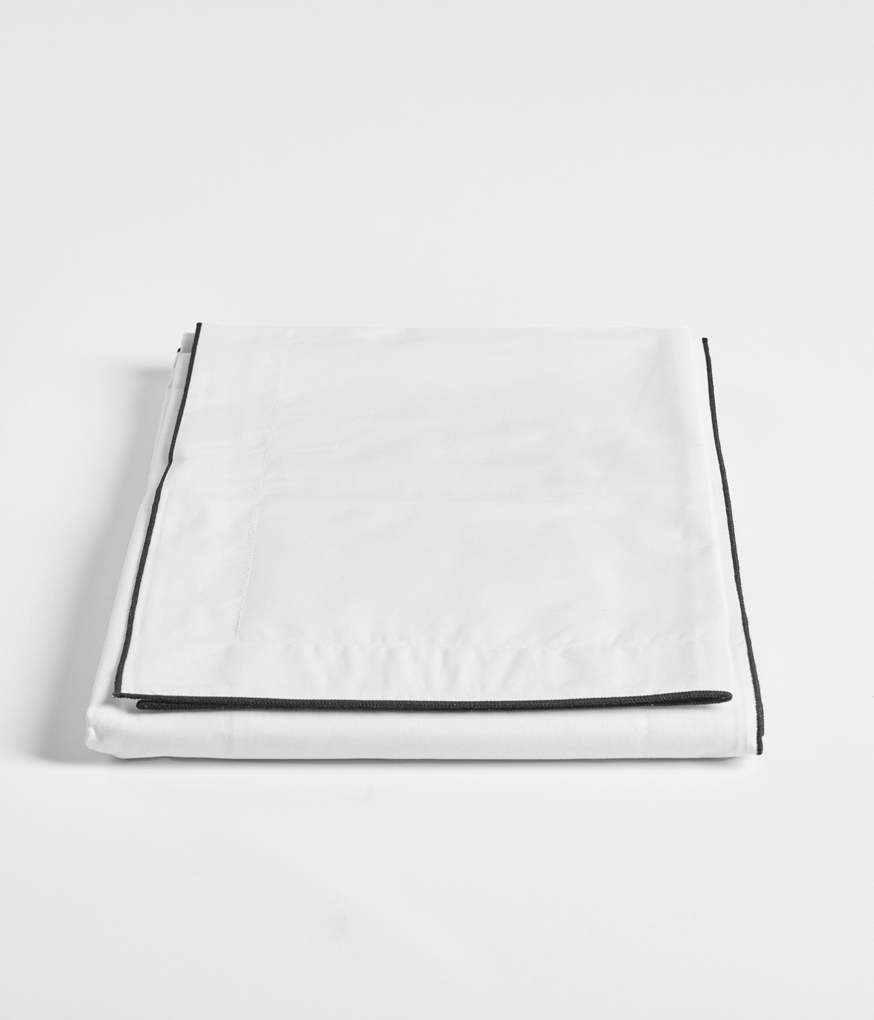 Juego de sábana con bajera 100% algodón BCI con acabado bordado en hilo de color . Fabricado en calidad percal 200 hilos de alta calidad y con certificado sostenible BCI con acabado bordado en hilo de color , producciones respetuosas con el medio ambiente y la salud de las personas.