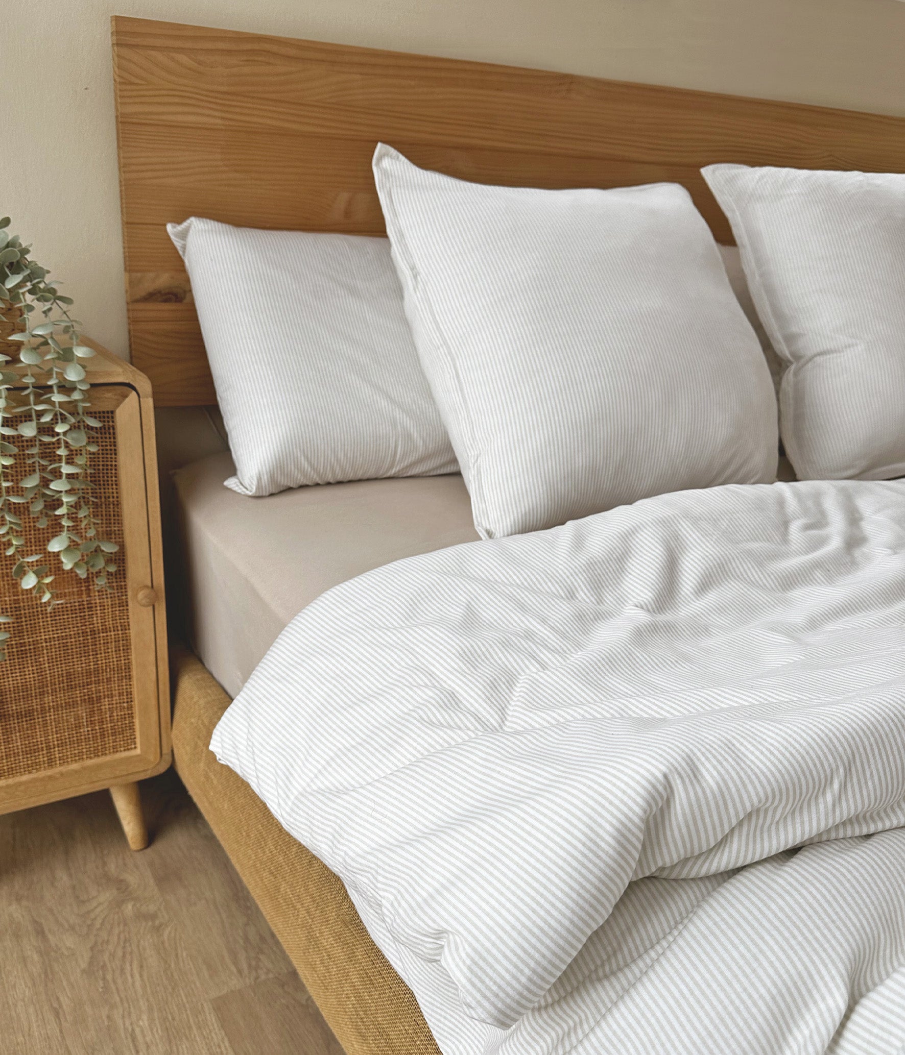 Descubre nuestra Sábana de punto Jersey, confeccionada en algodón 100% peinado para ofrecer una suavidad y comodidad excepcionales. Diseñada para proporcionar una termorregulación óptima y una excelente transpirabilidad, esta sábana garantiza un sueño ininterrumpido sin importar los cambios de temperatura. Además, ¡ni se arruga ni se plancha, disfruta de tu tiempo libre! Diseñada en Barcelona y fabricada en Portugal.
